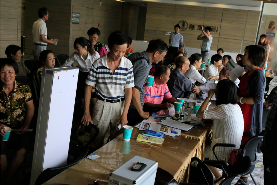 據(jù)統(tǒng)計(jì),參加本次健康義診的老人共有34名。雖然人數(shù)較多,讓23樓大堂“人氣滿滿”,但現(xiàn)場卻也十分井然有序。因?yàn)橛胸?cái)富中心物業(yè)人員熱情引導(dǎo)和秩序維護(hù),他們還為等候區(qū)的老人們遞上茶水和糕點(diǎn),老人們歡快暢談,讓等待的過程也變得輕松愉悅。