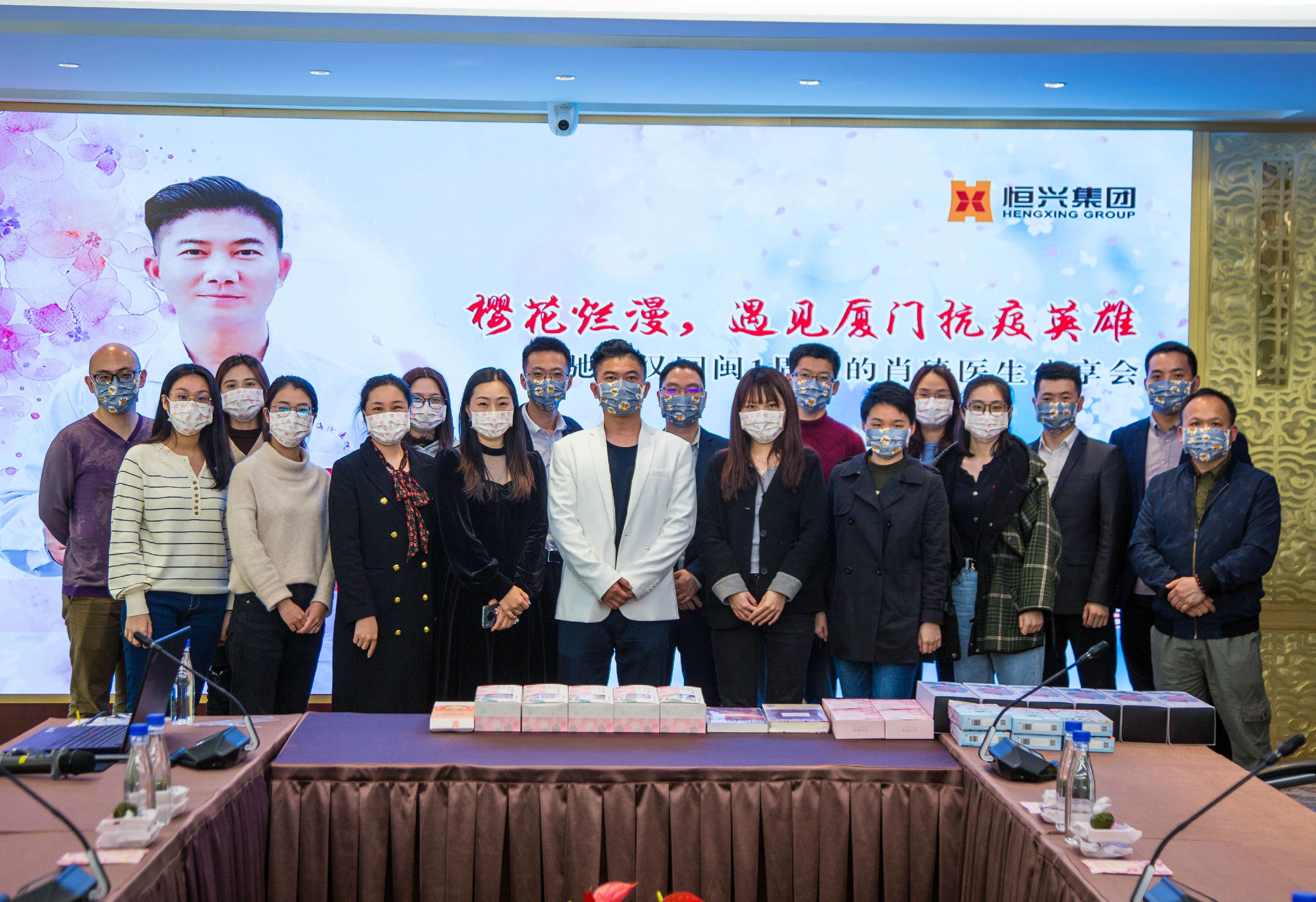 肖琦醫(yī)生去年1月27日出發(fā)武漢,58天后,2020年3月24日回福建。第35期悅界分享的舉辦時間,正是福建首批醫(yī)療隊回閩1周年。分享會上,恒興員工和戴上櫻花口罩,和肖琦醫(yī)生一起度過這特殊的周年紀念。