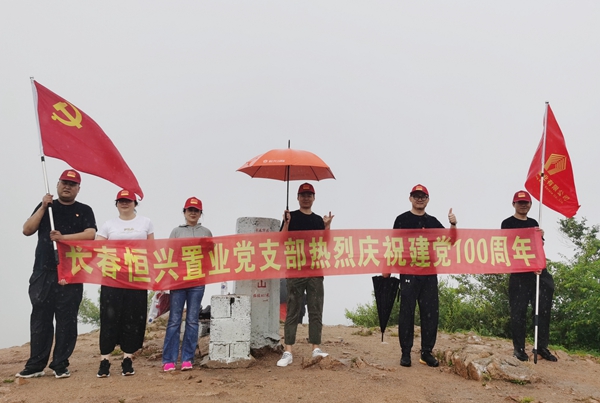 當天上午,由長春恒興置業(yè)有限公司黨支部書記劉志達帶隊、全體黨員和積極分子參與,邀請長春公司董事長楊聯(lián)城、總經(jīng)理羅占國、總經(jīng)理助理周劍秋,齊聚海拔400余米的長春大頂子山腳下(大頂子山:長春市轄區(qū)最高點),高舉鮮紅的黨旗和長春恒興置業(yè)有限責任公司旗幟,向長春最高峰出發(fā)。